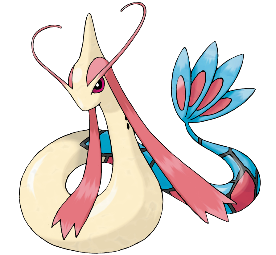 Pokedex: De Milotic se dice que es el Pokémon más bello. Tiene la capacidad de calmar sentimientos tales como el miedo y la hostilidad, y apaciguar las relaciones de áspera enemistad.