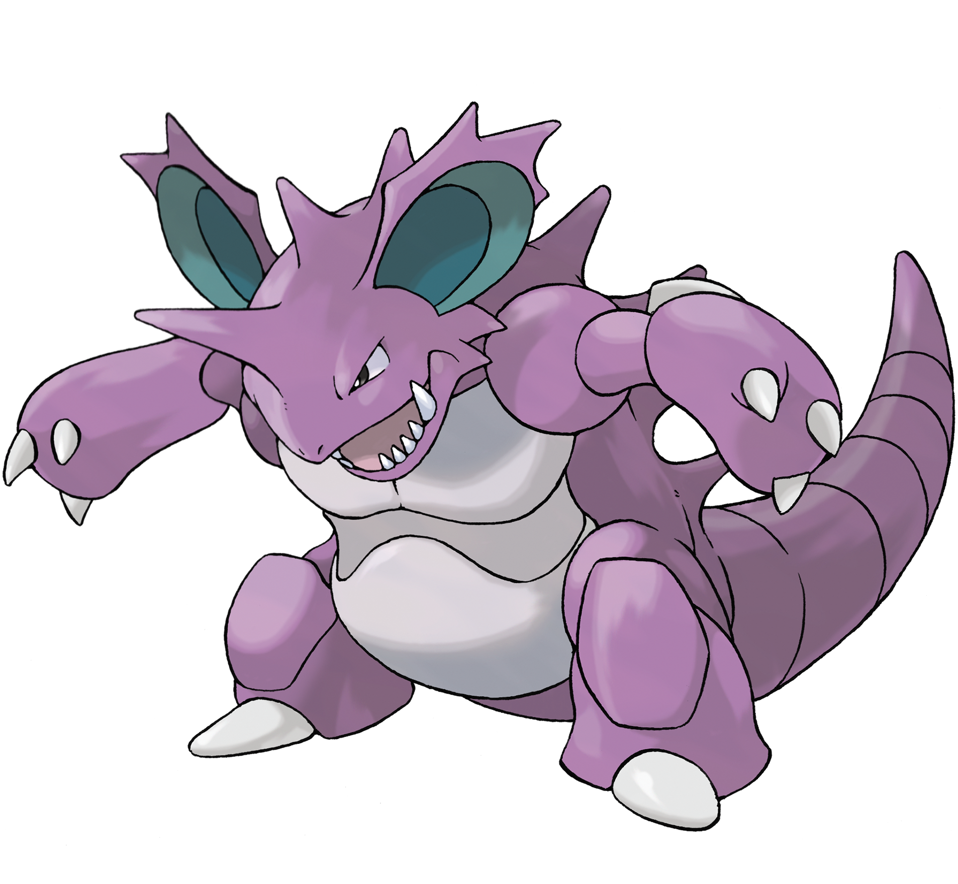 Pokedex: La gruesa cola de Nidoking encierra una fuerza realmente destructora. Con una vez que la agite, es capaz de tumbar una torre metálica de transmisión. Una vez que este Pokémon se desboca, no hay quien lo pare.